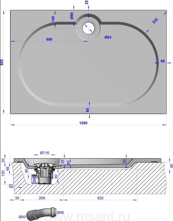 Поддон для душа GuteWetter Deluxe 120x80x2 Q черный