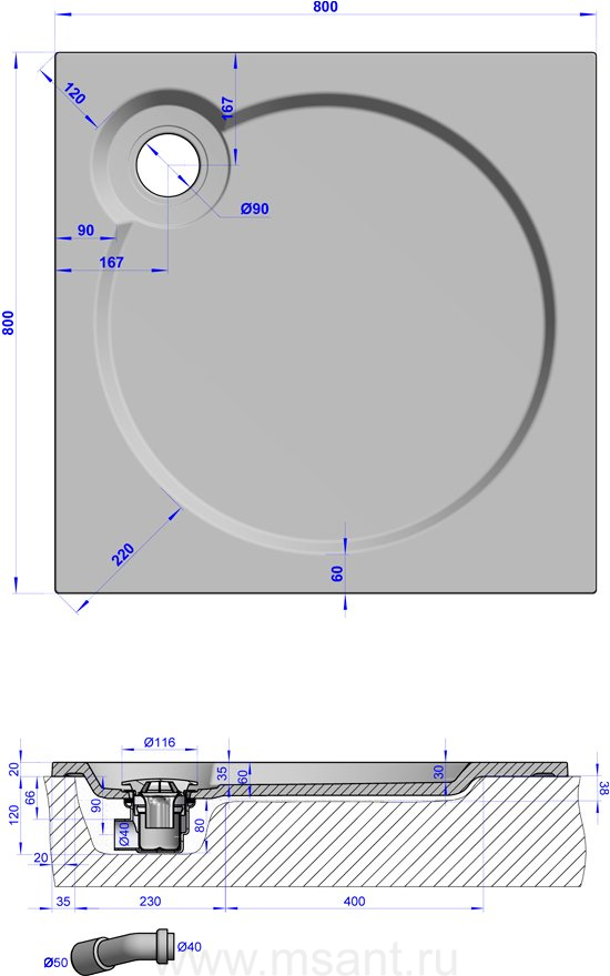 Поддон для душа GuteWetter Deluxe 80x80x2 Q серый