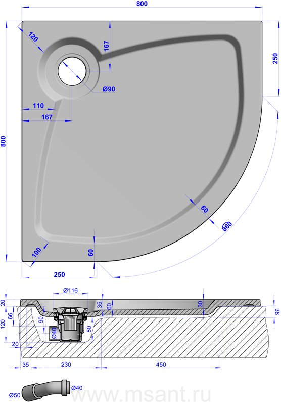 Поддон для душа GuteWetter Deluxe 80x80x2 R серый