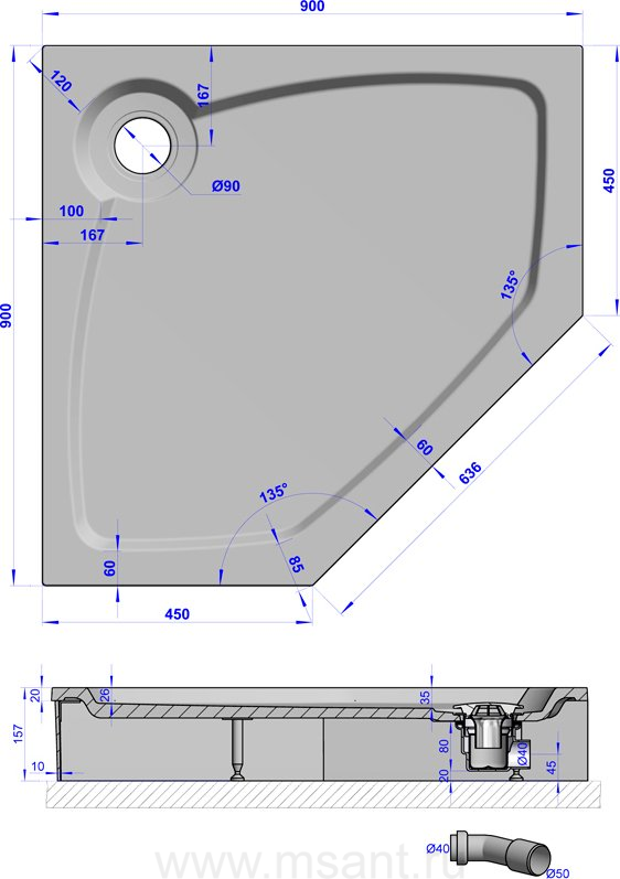 Поддон для душа GuteWetter Deluxe 90x90x16 P терракот