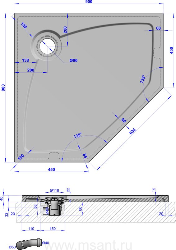 Поддон для душа GuteWetter Deluxe 90x90x4 P бежевый