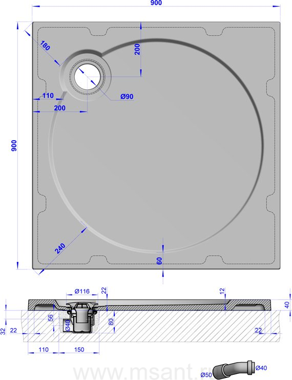 Поддон для душа GuteWetter Deluxe 90x90x4 Q серый