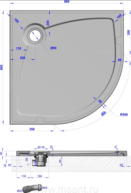 Поддон для душа GuteWetter Deluxe 90x90x4 R терракот