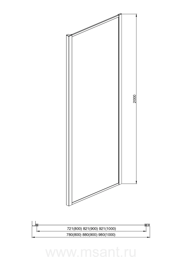 Неподвижная душевая стенка Aquatek 900x2000, для комбинации с дверью, профиль хром, стекло прозрачное
