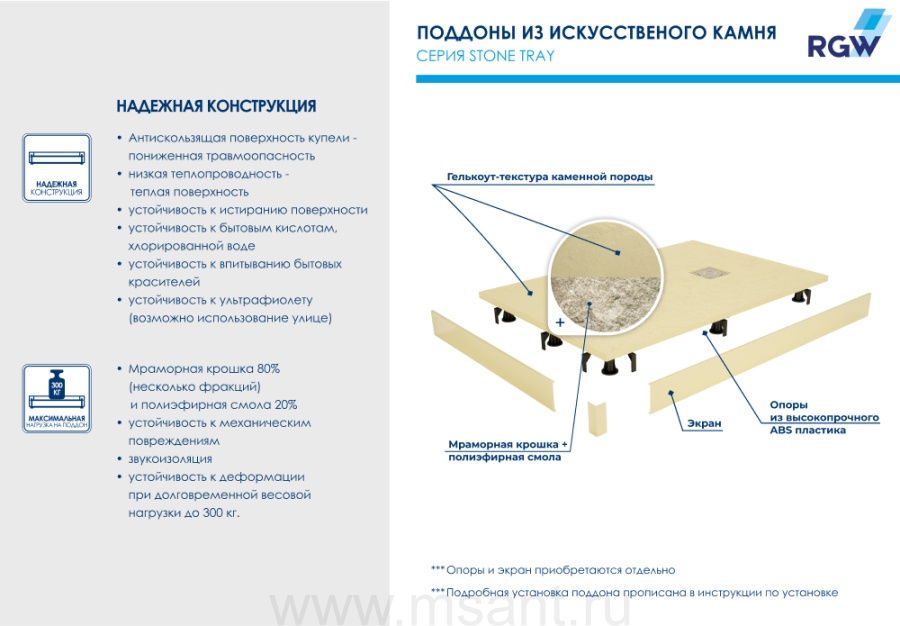 Душевой поддон прямоугольный RGW ST-Be Бежевый (800x1000)