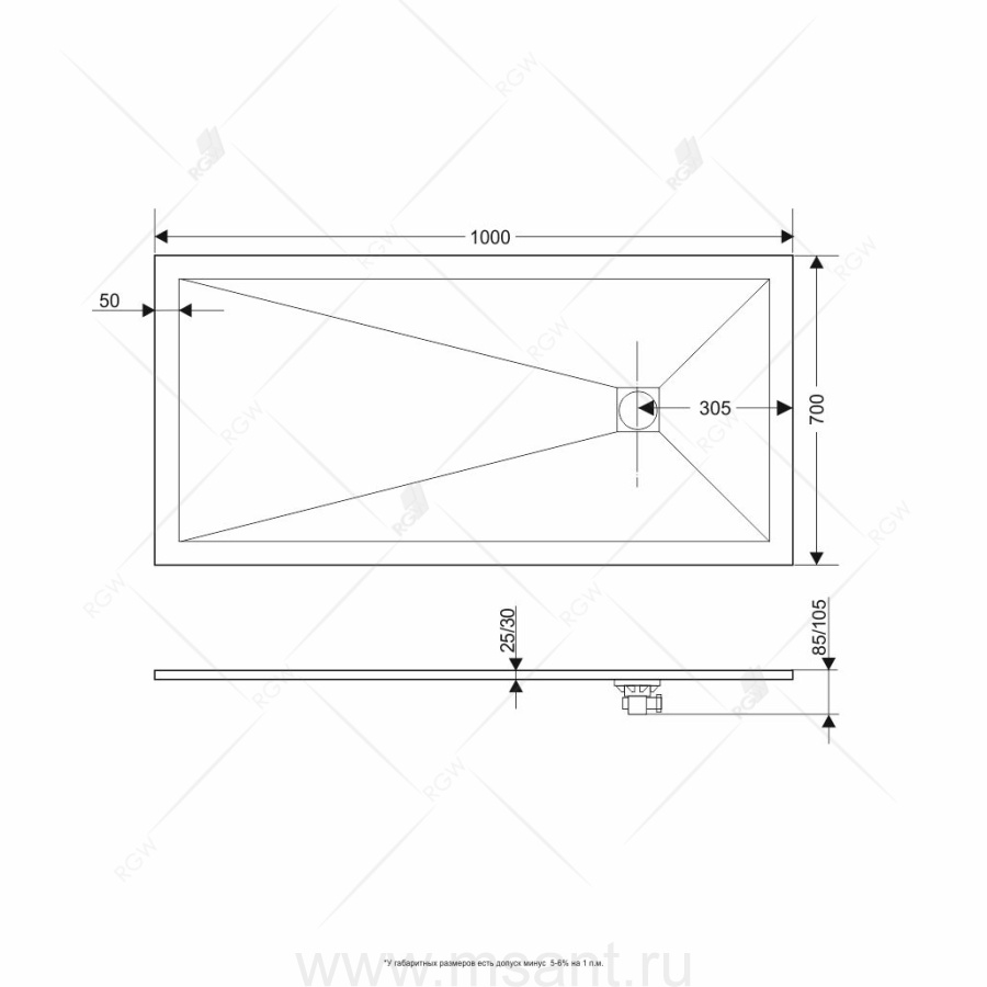 Душевой поддон прямоугольный RGW ST-W Белый (700x1600)