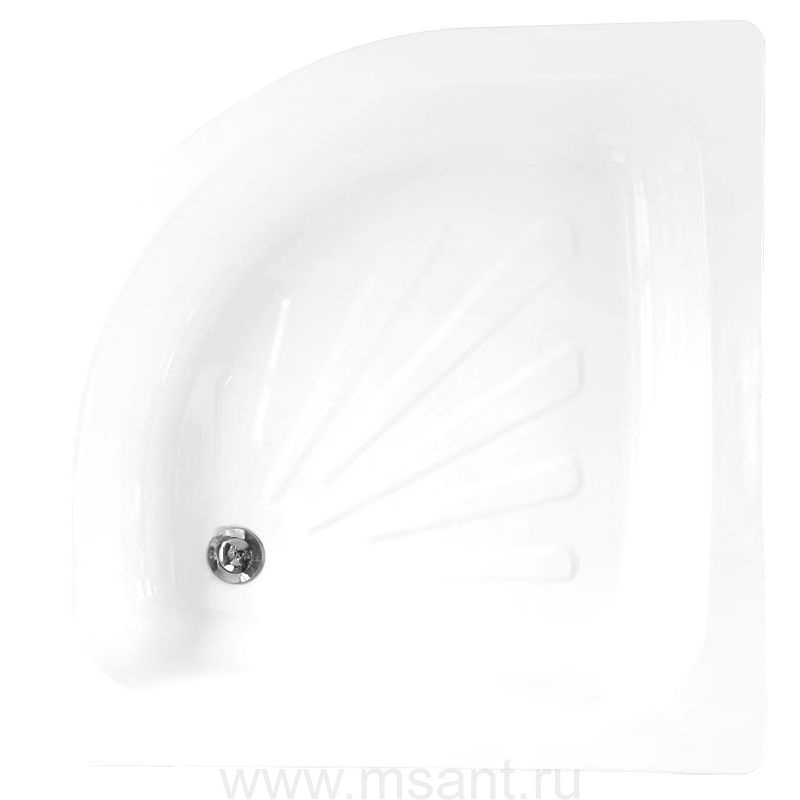 Поддон Loranto стальной, полукруглый 90х90х15 толщина стенок 0,9 мм, отверстие для слива 5 см, белый (LG900C)
