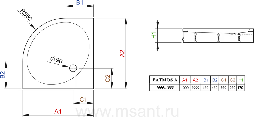 Поддон для душа Radaway Patmos A1000