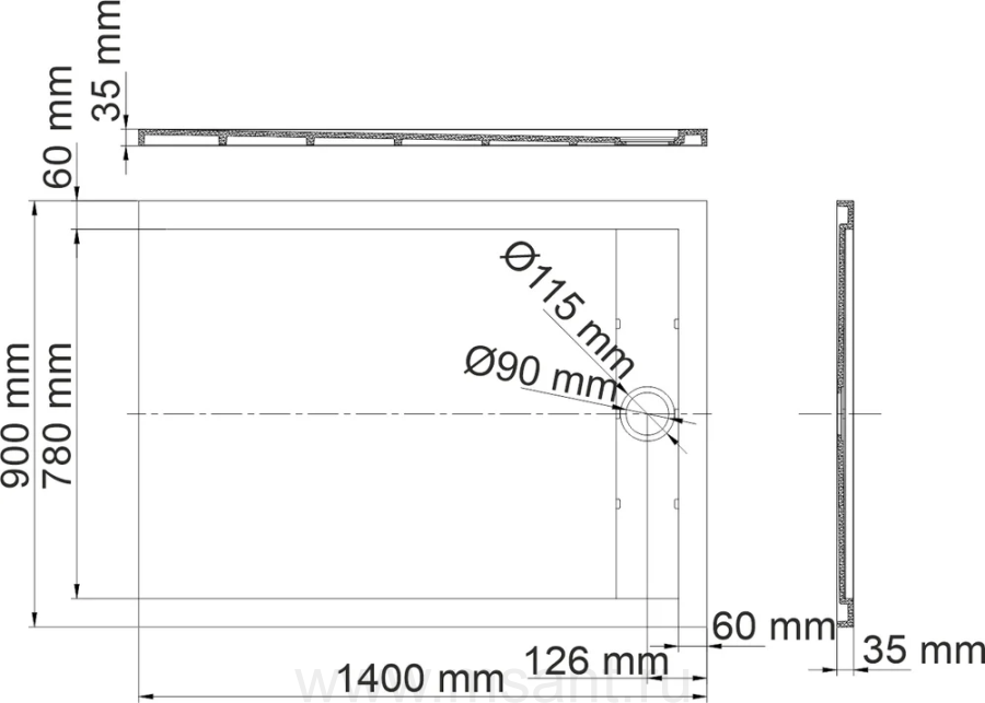 Поддон для душа Wasserkraft Abens 20T36 140x90