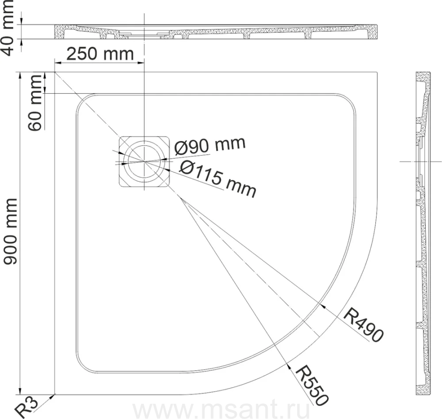 Поддон для душа Wasserkraft Dinkel 58T01 90x90