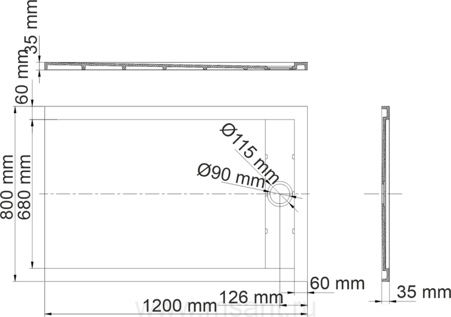 Поддон для душа Wasserkraft Wiese 84T06 120x80