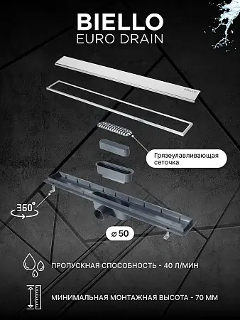 Душевой лоток Pestan BIELLO 850 комбинированный, хром матовый (13300017)