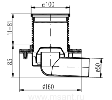 Душевой трап AZARIO D50 пластиковый, боковой слив, с решеткой SUN 10х10см (AZ-411 L)