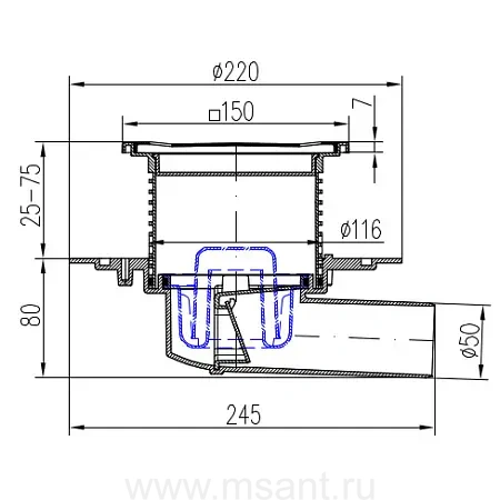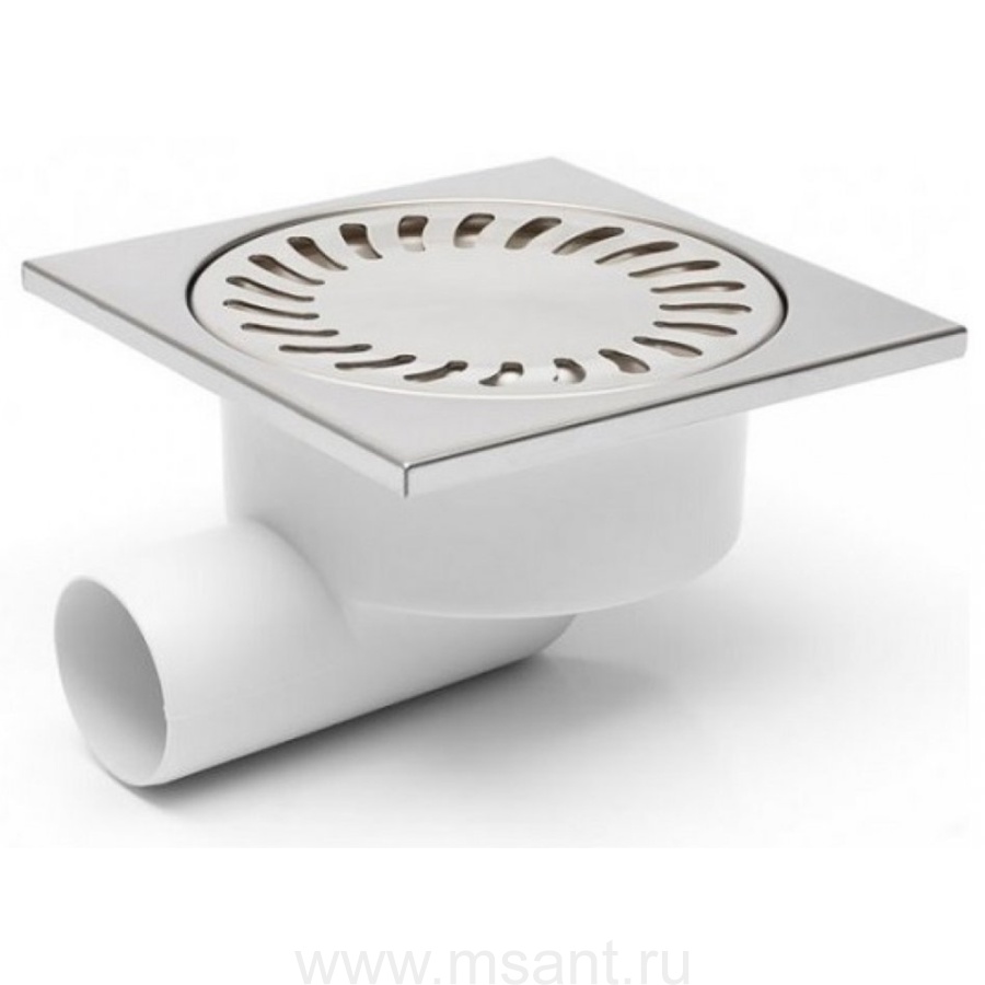 Душевой трап AZARIO НЕПТУН DN50/95 15х15см, пластик, боковой слив, решетка из нержавеющей стали (AZ-326 X N)