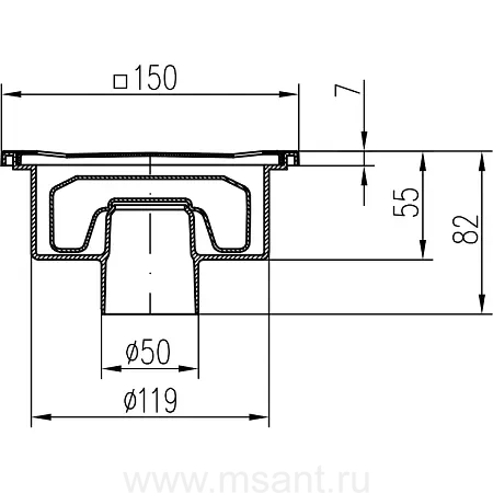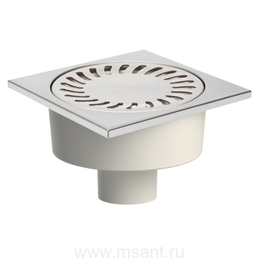 Душевой трап AZARIO НЕПТУН DN50/95 15х15см, пластик, вертикальный слив, решетка из нержавеющей стали (AZ-320 X N)