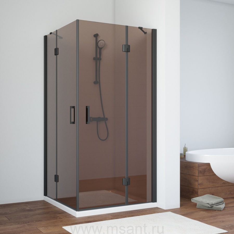 Душевой уголок Vegas Glass AFA NOVO 80 02М 05, профиль черный матовый, стекло бронза