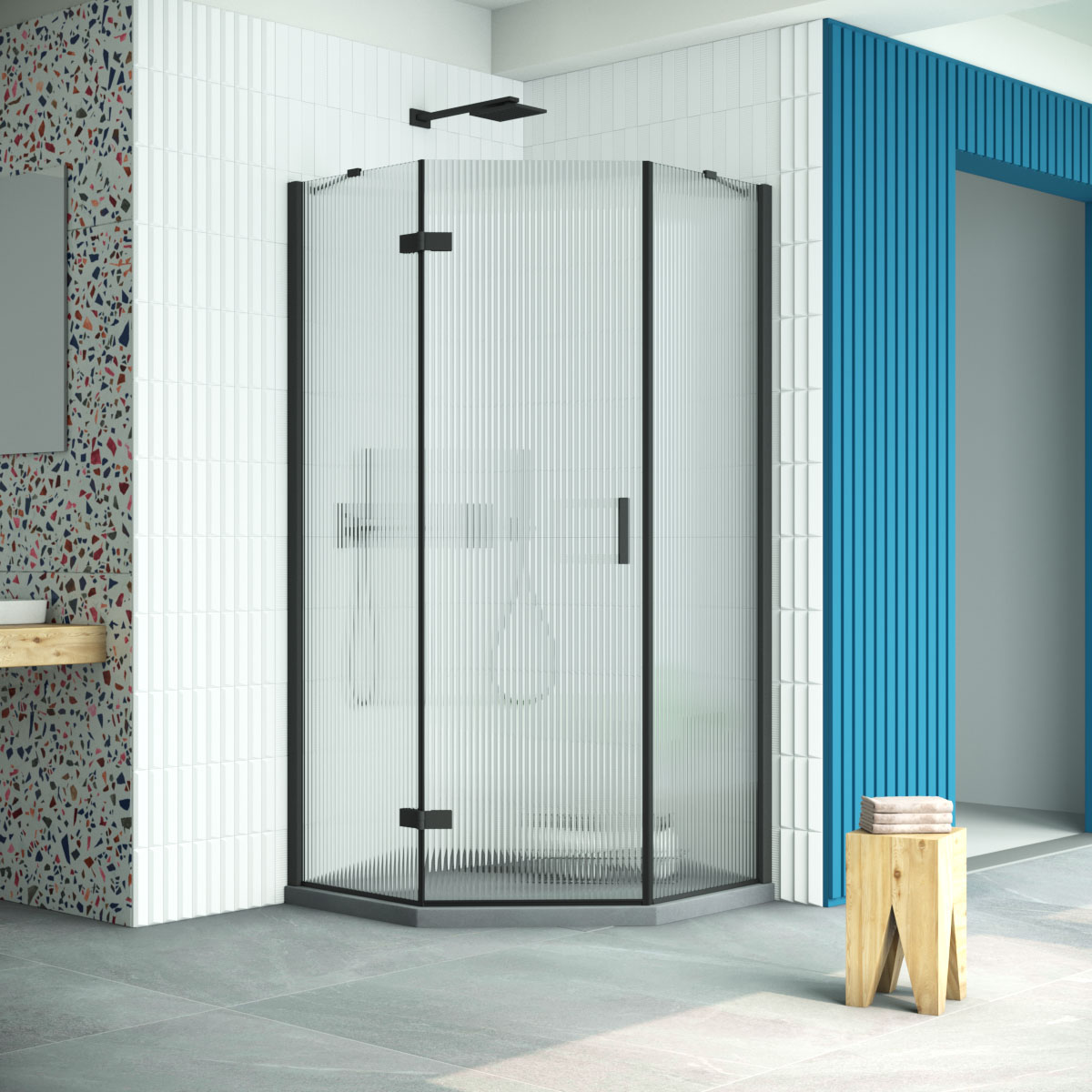 Душевой уголок Vegas Glass AFA-Pen Retta 100 02М Moru L профиль черный матовый стекло Moru