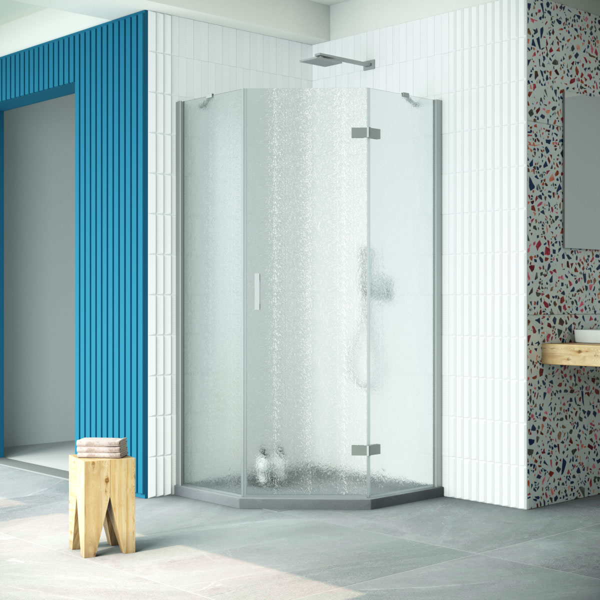 Душевой уголок Vegas Glass AFA-Pen Retta 100 07 02 R профиль матовый хром стекло шиншилла