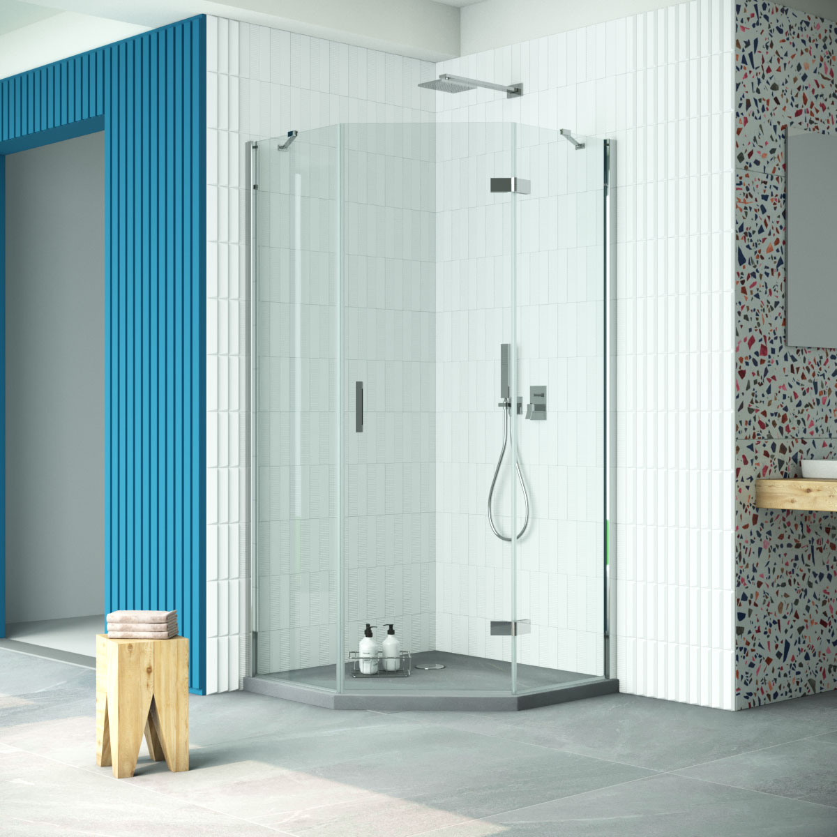 Душевой уголок Vegas Glass AFA-Pen Retta 100 08 crystalvision R профиль глянцевый хром стекло crystalvision