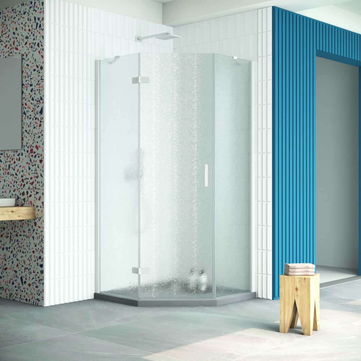 Душевой уголок Vegas Glass AFA-Pen Retta 90 01 02 L профиль белый стекло шиншилла