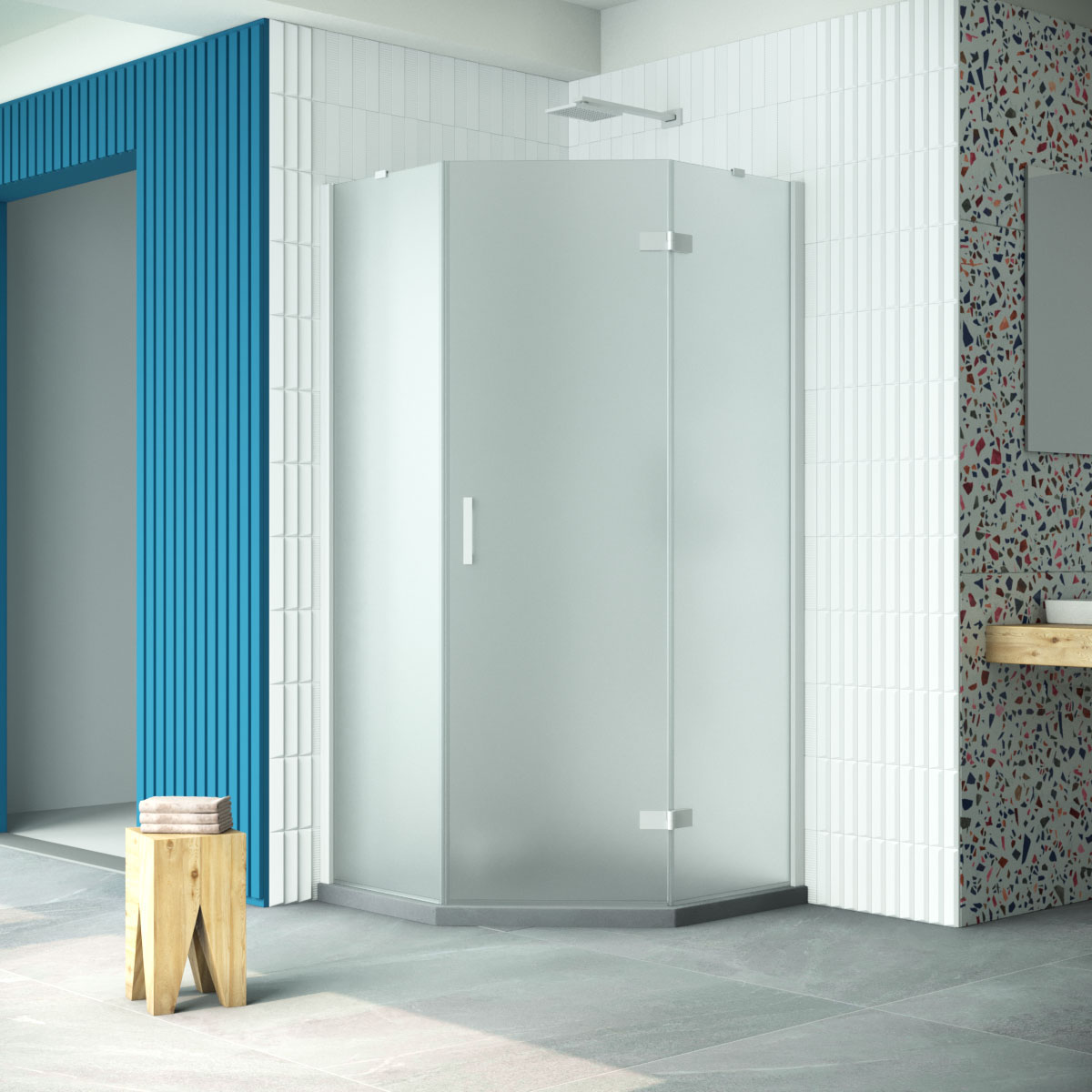 Душевой уголок Vegas Glass AFA-Pen Retta 90 01 10 R профиль белый стекло сатин