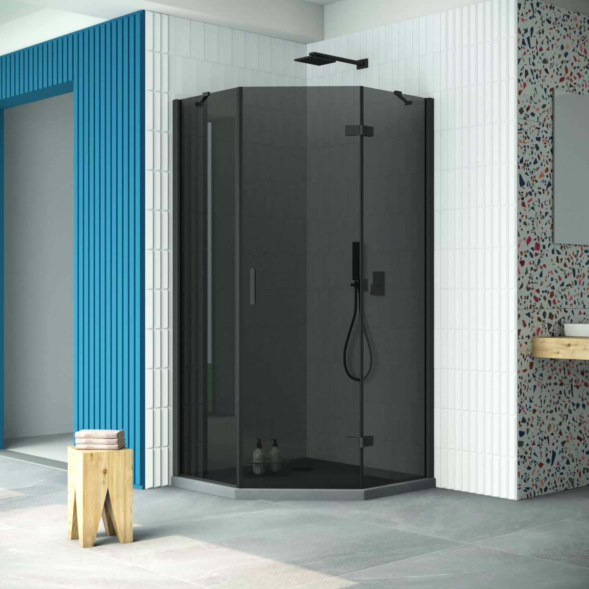 Душевой уголок Vegas Glass AFA-Pen Retta 90 02М 07 R профиль черный матовый стекло графит
