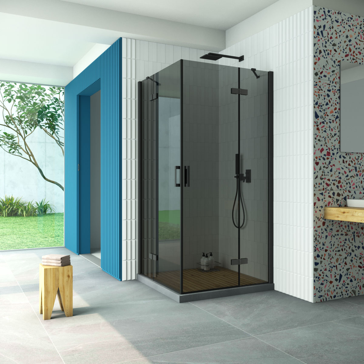 Душевой уголок Vegas Glass AFA Retta 80 02М 07 профиль черный матовый стекло графит