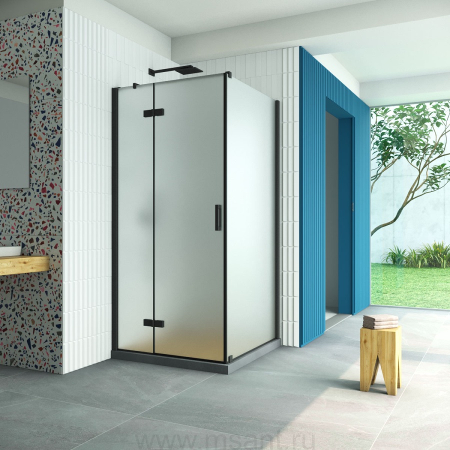 Душевой уголок Vegas Glass AFP-Fis Retta 90*110 02М 10 L профиль черный матовый стекло сатин