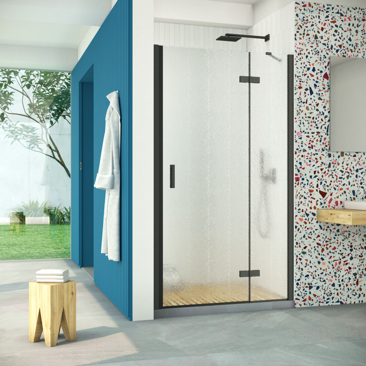 Дверь в душевой проем Vegas Glass AFP Retta 95 02М 02 R, профиль черный матовый, стекло шиншилла
