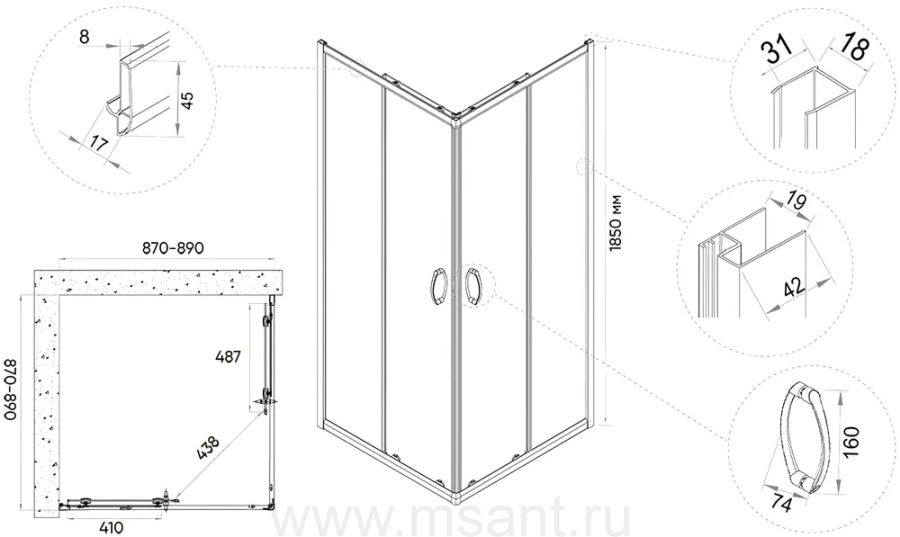 Душевые уголки 90x90 см