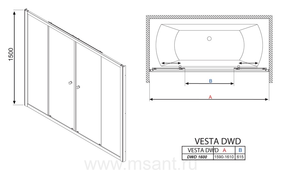 Шторка на ванну Radaway Vesta DWD 160 прозрачное стекло