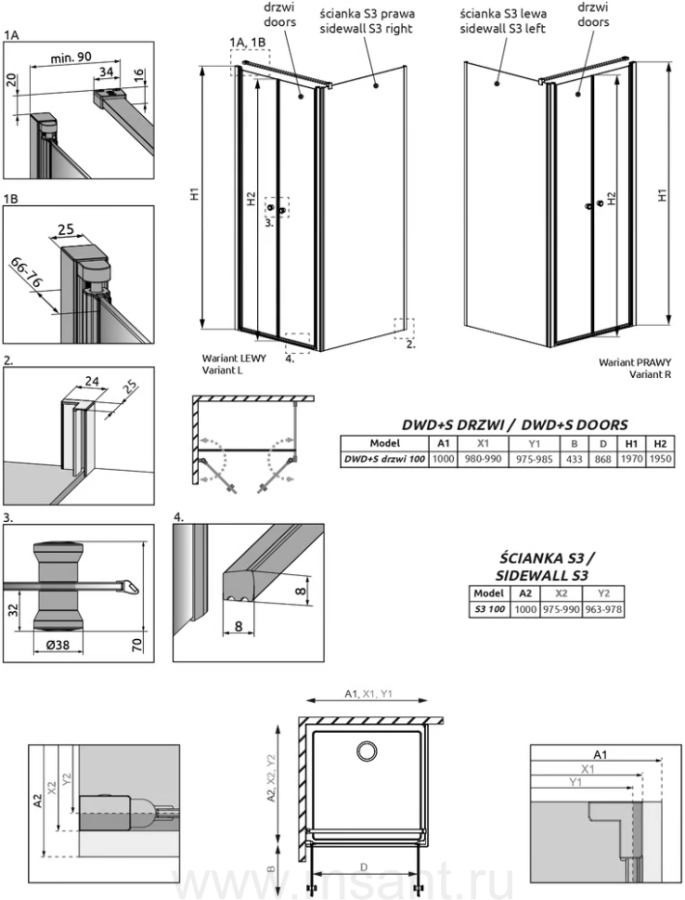 Душевой уголок Radaway EOS DWD+S 100x100