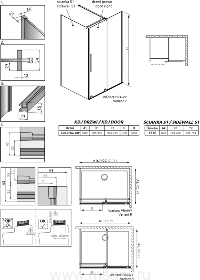 Душевой уголок Radaway Furo KDJ 100x80 R