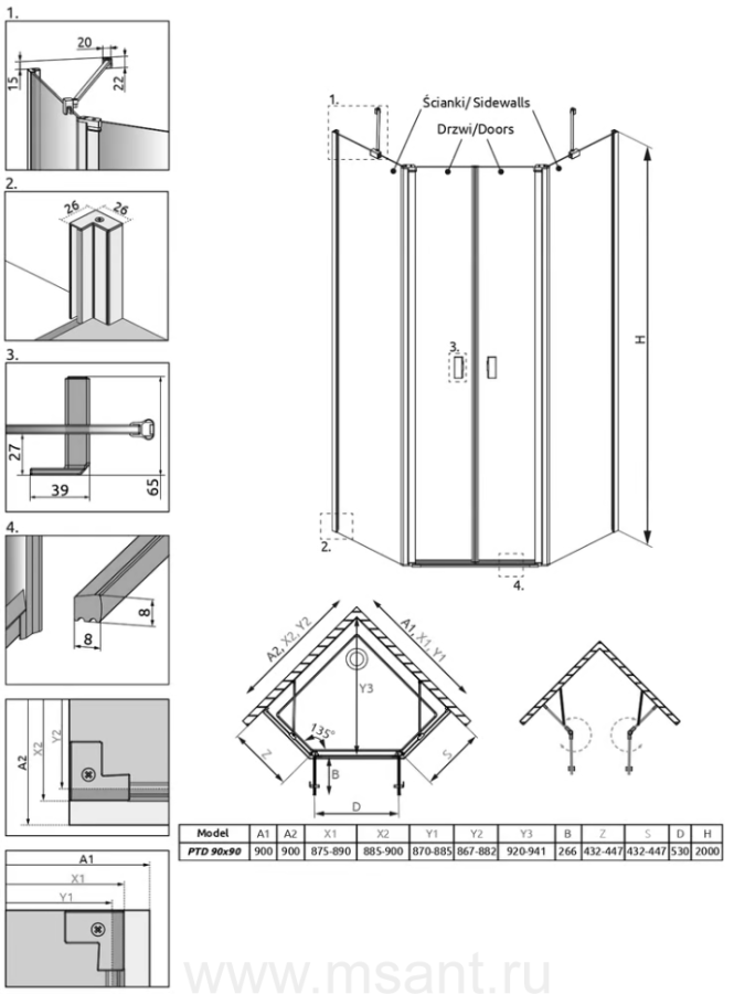 Душевой уголок Radaway Nes PTD 90x90