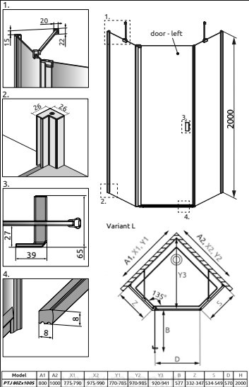 Душевой уголок Radaway Nes PTJ 80x100, L