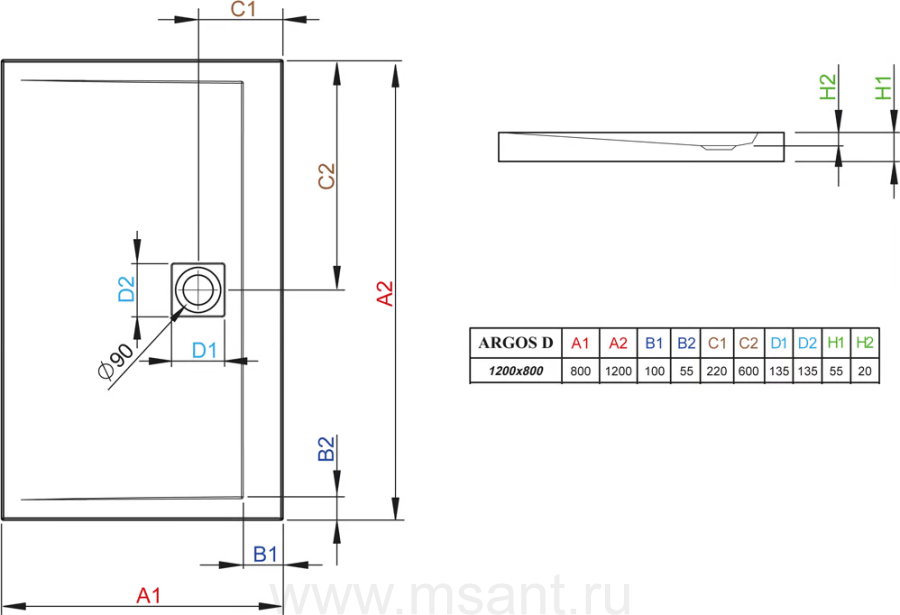 Поддон для душа Radaway Argos D80x120