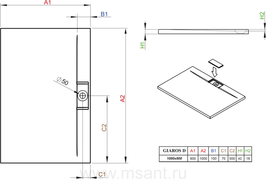 Поддон для душа Radaway Giaros D90x100