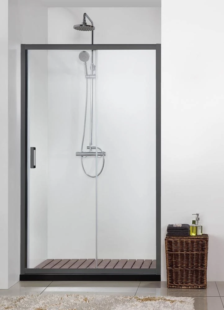 AQUATEK AQ ARI RA 10020BL Душевая дверь двухэлементная, раздвижная1000x2000 профиль черный, стекло прозрачное