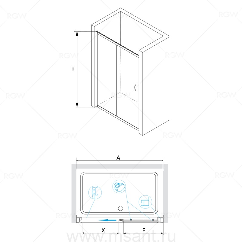 Душевая дверь RGW PA-016 (Прозрачное, 1000)