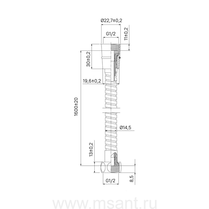 Шланг для душа, 1,5м, 130, Milardo, 130S150M19