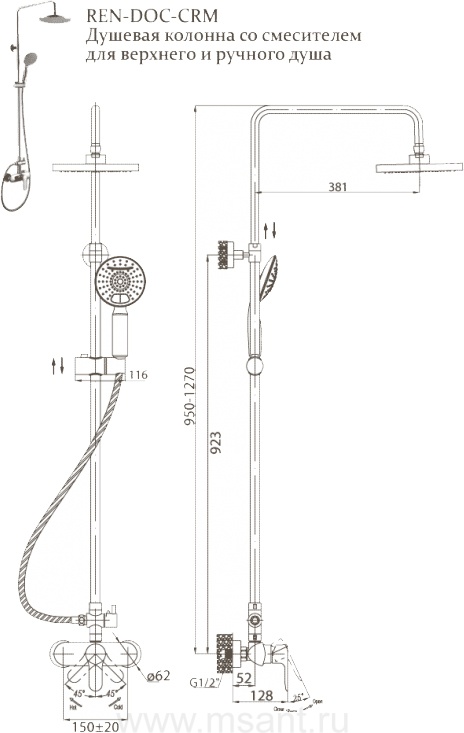 Душевая стойка BelBagno Reno REN-DOCM-CRM-IN