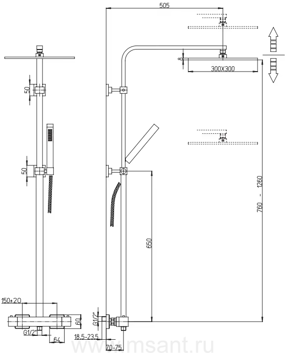 Душевая стойка Paini Dax-R 84CR689THSQ4P1