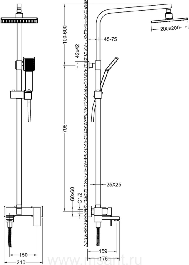 Душевая стойка Timo SeleneSX-2013/03 черный