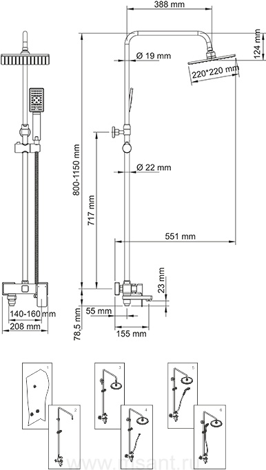 Душевая стойка Wasserkraft A17701 80/115x55,1 см