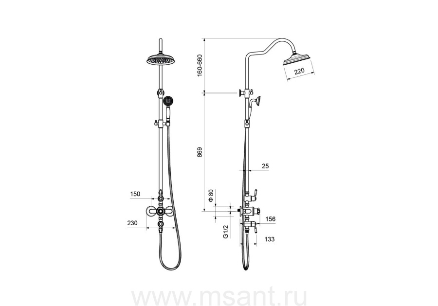 Термостатическая душевая система AQUATEK, полир. золото AQ2563PG КЛАССИК