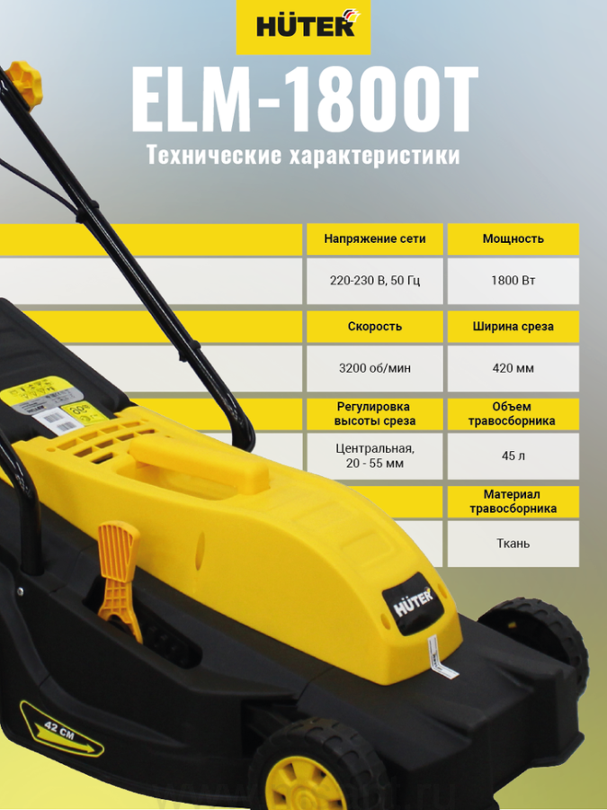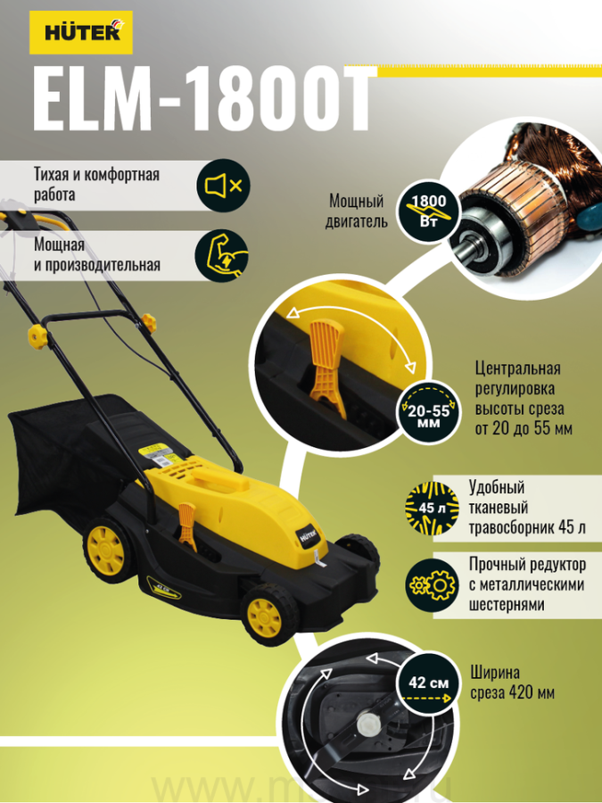 Газонокосилка электрическая HUTER ELM-1800T
