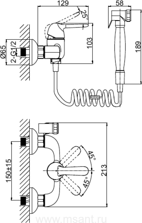 Гигиенический душ D&K Ambrosius Rhein DA1344501 со смесителем