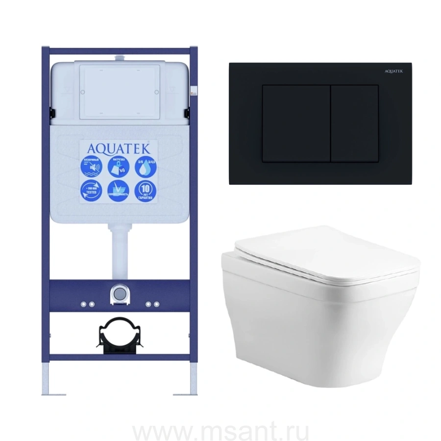 Set-3 AQUATEK АМАДЕО cm (рама AQUATEK Standard INS-0000012 с звукоиз.прокладкой+крепеж KKI-0000002+кнопкаKDI-0000012+унитаз АМАДЕО AQ1180-00 с сиденьем мткролифт