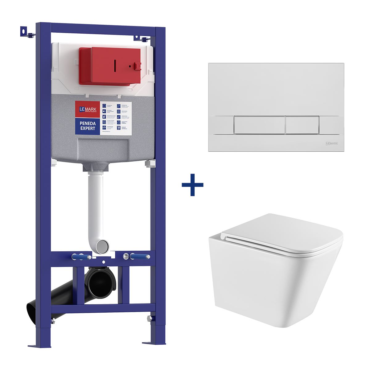 Комплект 3в1: 100121423 Инсталляция Lemark PENEDA EXPERT для унитазов с кнопкой смыва BIT хром глянец + унитаз подвесной безободковый FLOREX Торнадо белый глянец