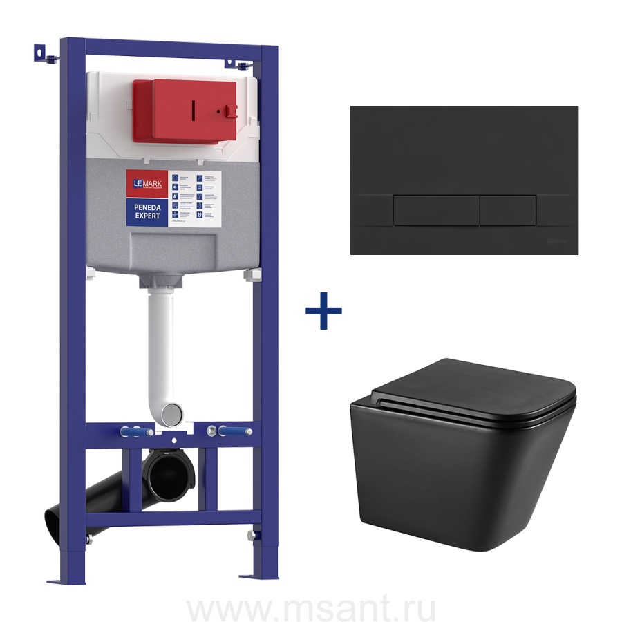 Комплект 3в1: 100122236 Инсталляция Lemark PENEDA EXPERT для унитазов с кнопкой смыва BIT чёрный матовый + унитаз подвесной безободковый FLOREX Торнадо чёрный матовый